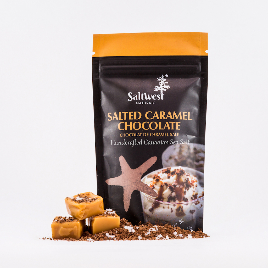A sweet and salty sprinkle of heaven in every bite of our Salted Caramel Chocolate Sea Salt. Indulge in the deep rich dark chocolate notes and natural caramel followed by the sweet kiss of our Raincoast Flaked Sea Salt. Use this as a dessert topper by sprinkling onto ice cream, cheesecake, freshly baked cookies or brownies. Add a spoonful to oatmeal, fresh strawberries with yogurt or as a specialty coffee rim trim or simply garnish whip cream.